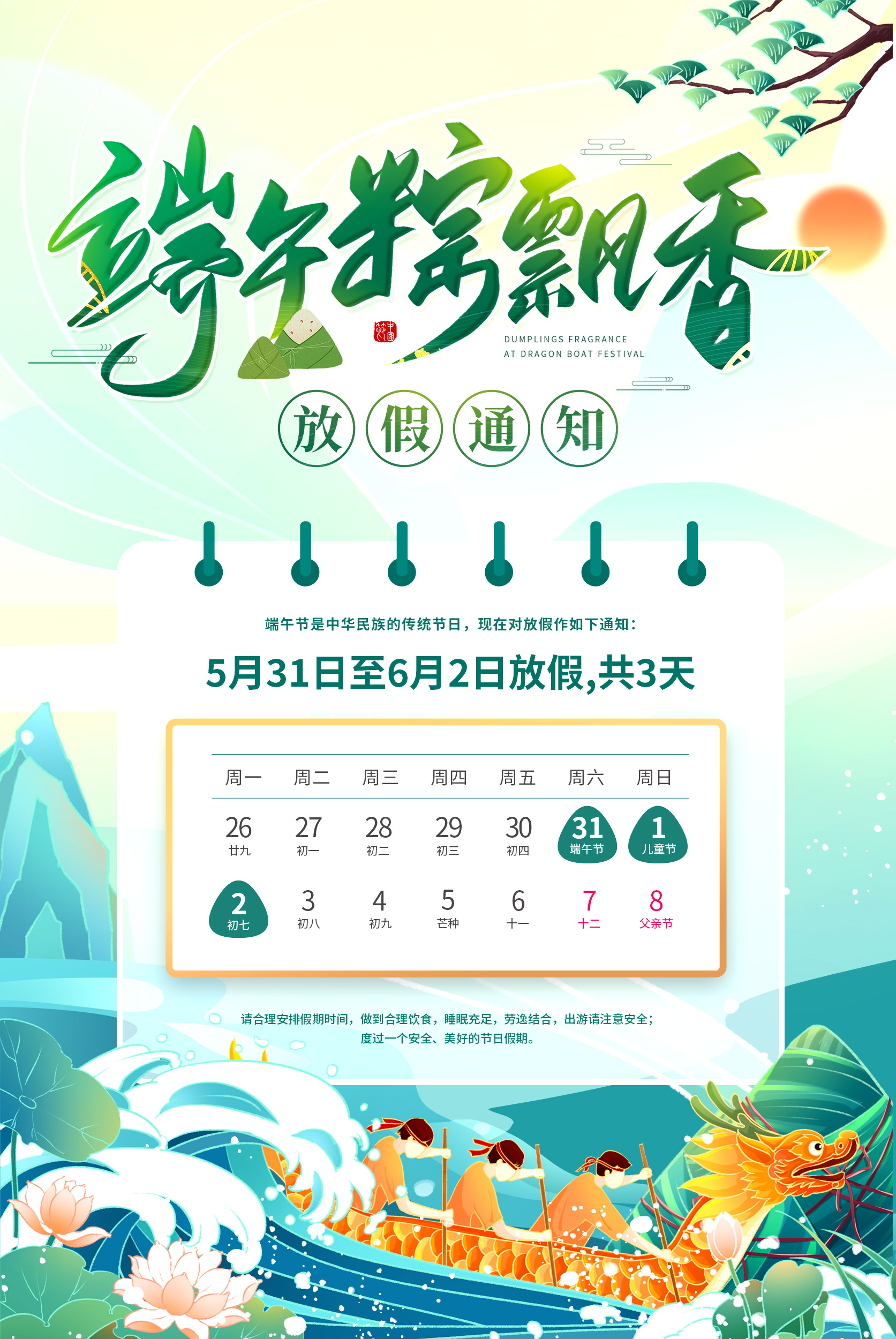 根據(jù)《國務(wù)院辦公廳關(guān)于2025年部分節(jié)假日安排的通知》,并結(jié)合我司實(shí)際情況,現(xiàn)將2025年端午放假安排通知如下:
